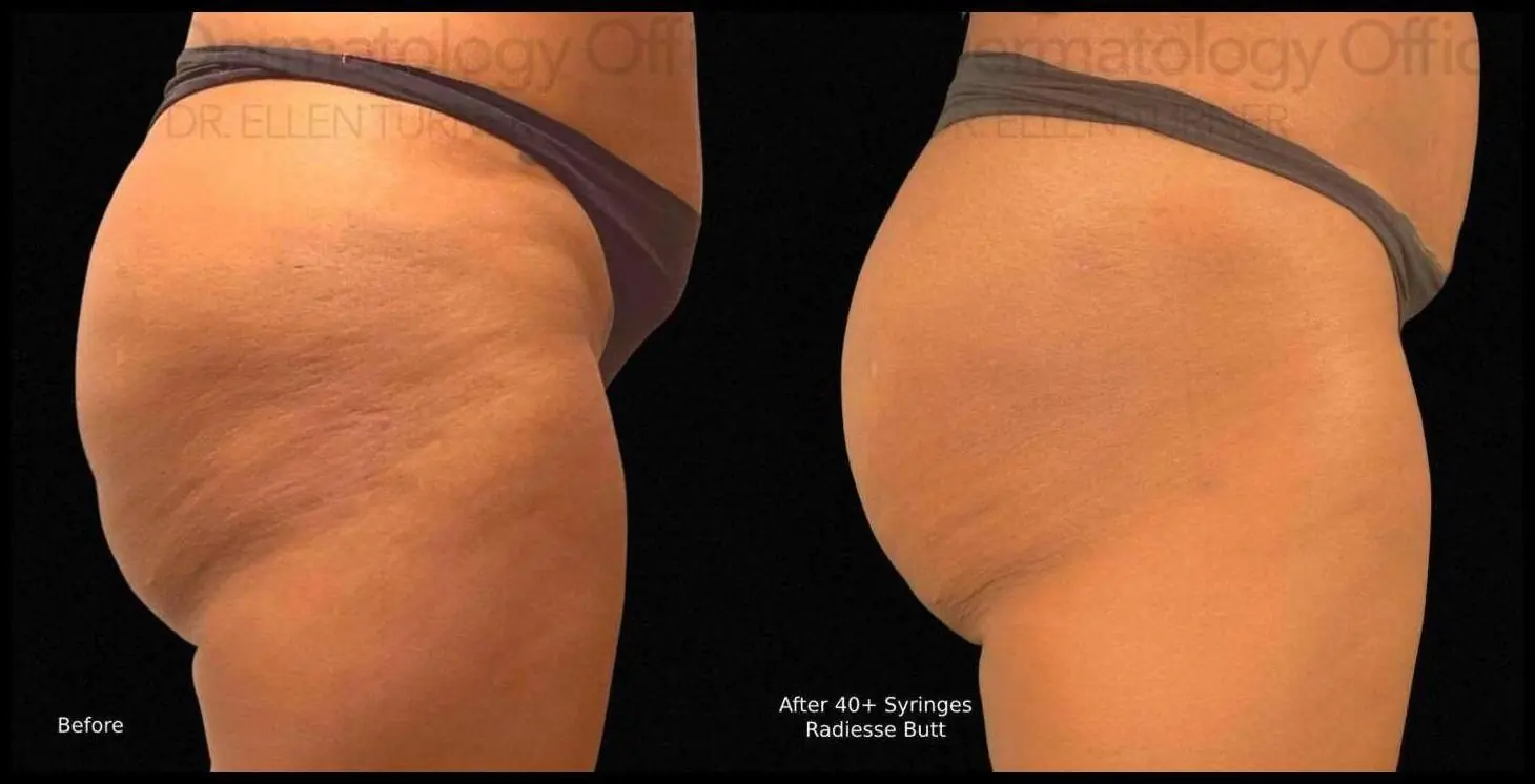 Dermatologist Dr. Ellen Turner uses Radiesse® for a range of applications. Patients who want to address facial lines enjoy its effects, as do those who want to enhance their buttocks. In fact, its posterior-shaping ability is so effective, it has earned the nickname “the injectable implant.”