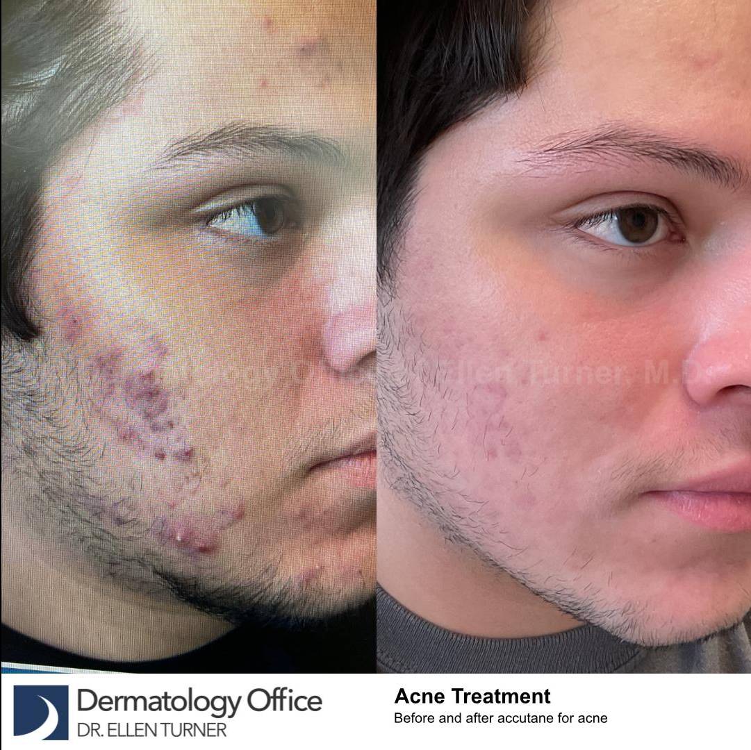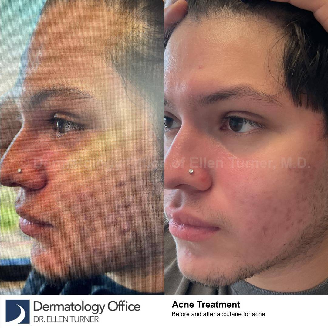 See the dramatic before and after results of Accutane treatment for acne in a male patient. Witness the transformation to clearer, healthier skin with expert dermatological care.