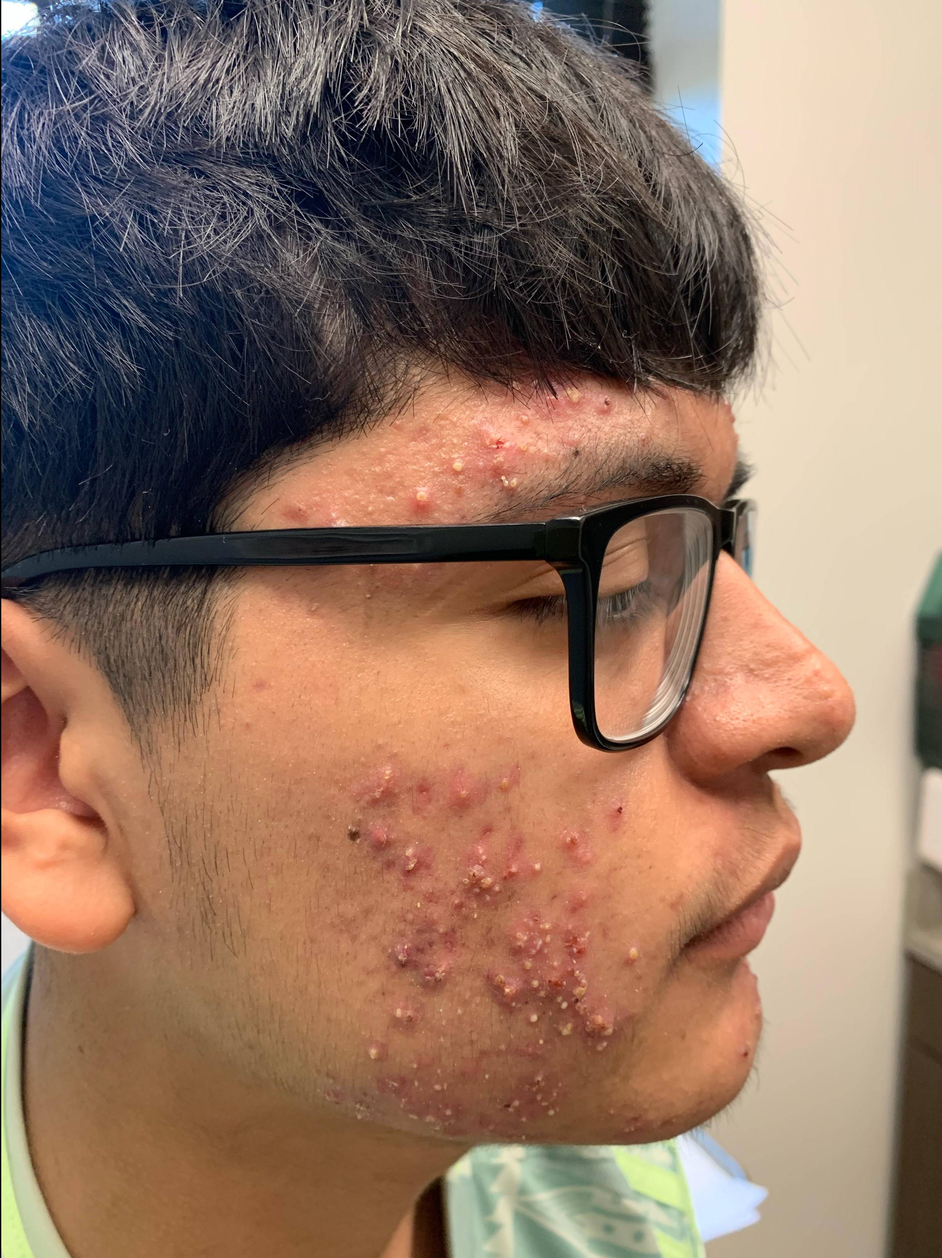 This a 18 year-old male patient who came to our office because he had been struggling with acne for years and was looking for a way to treat it. Dr. Turner customized a treatment plan using Accutane and he is very happy and confident now that he has clear skin.
