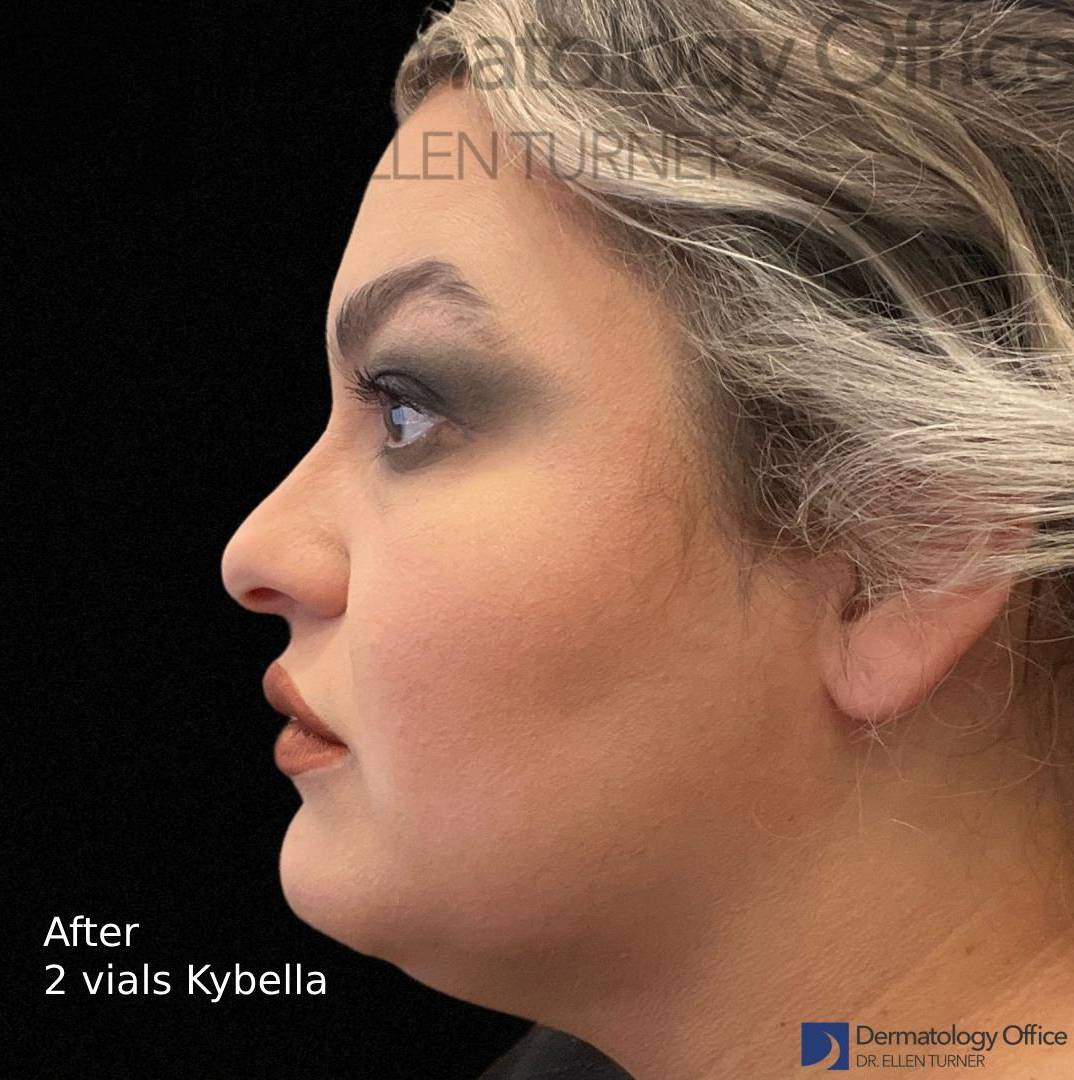 This 25 year old patient came in due to her double chin.After two treatments of kybella, the patients double chin was no longer visible.