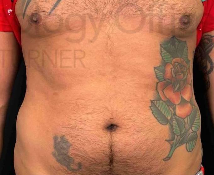 This is 35 year old male patient who came in because he wanted a more complete and full abdomen.This patient received ten vials of Radiesse to his upper abdomen.