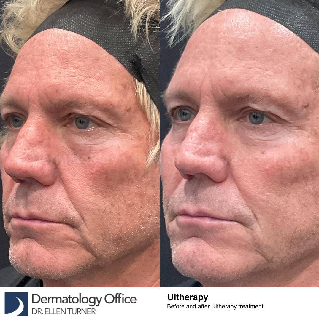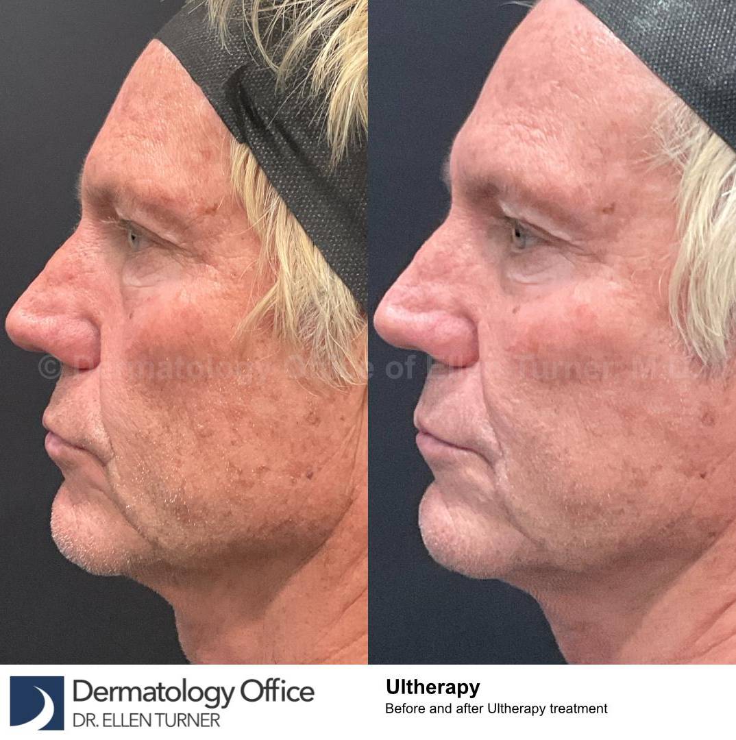 A male patient in his 60s achieved a firmer, lifted appearance with Ultherapy. This non surgical ultrasound treatment stimulates collagen production to tighten skin on the face and neck for natural, long lasting rejuvenation.