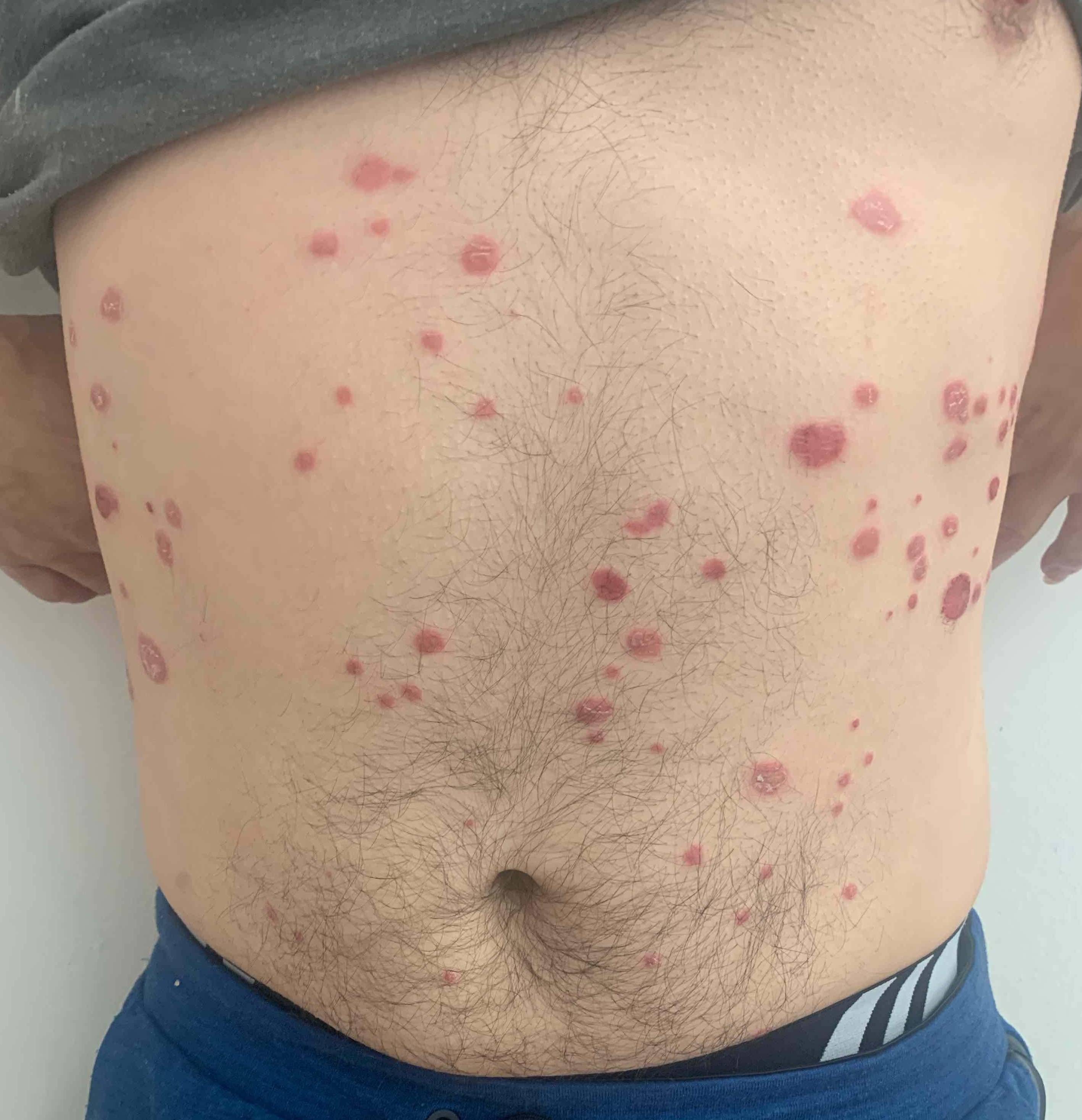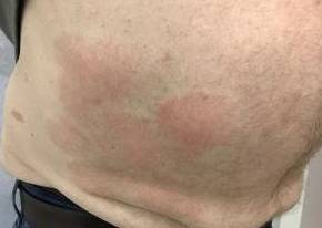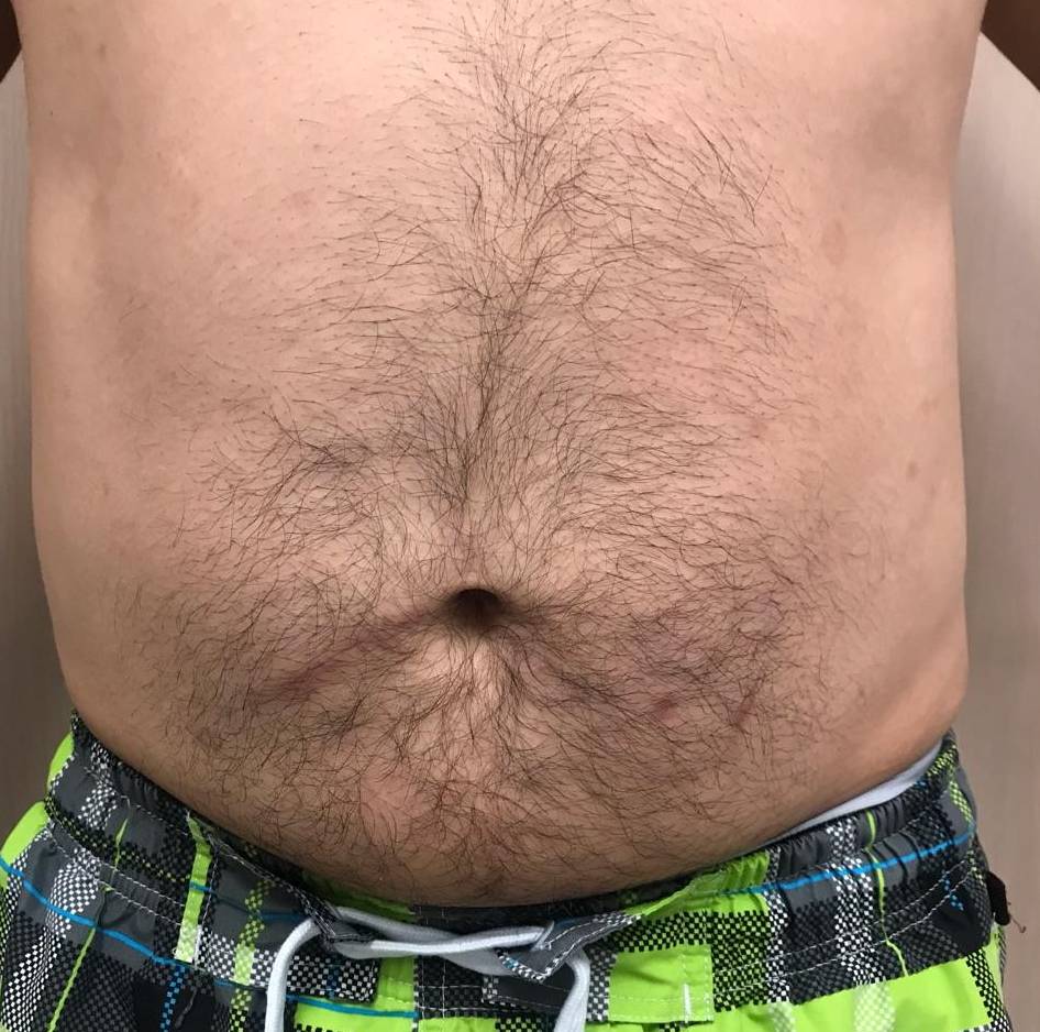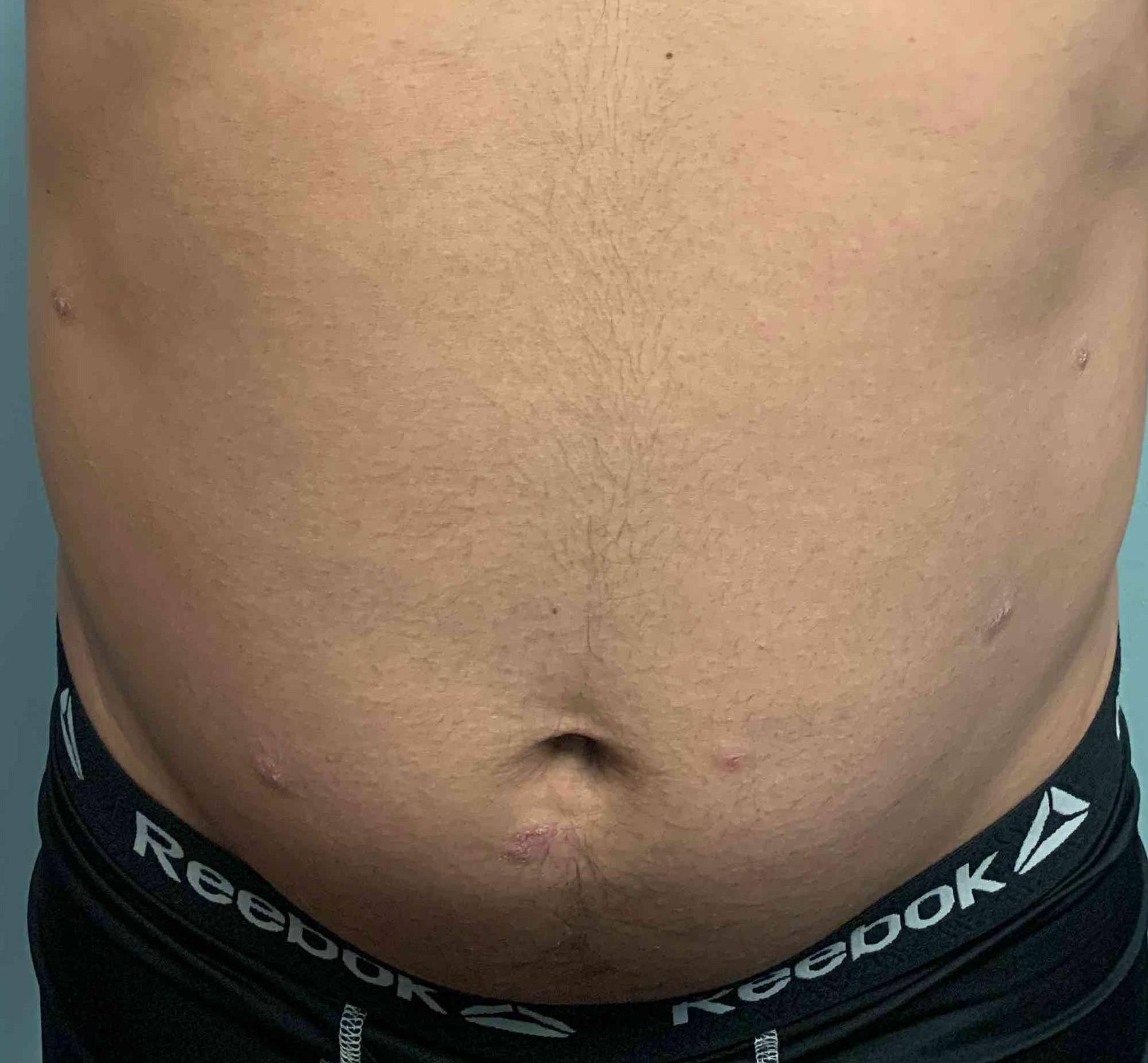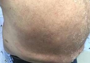 This is a 55 year old male patient who came in for psoriasis on his abdomen. The patient was treated with Cosentyx and was pleased with his results.