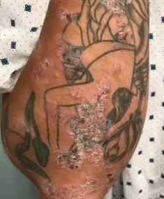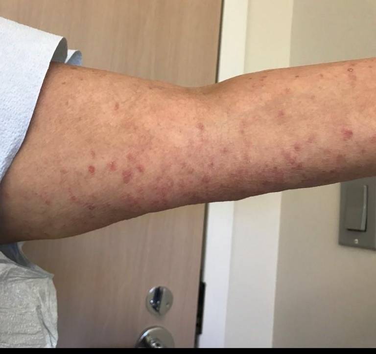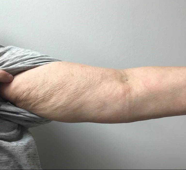 Upon their arrival, this female patient's main complaint was having a rash on their elbow. The patient was given Otezla for 6 months and she is content with her results.