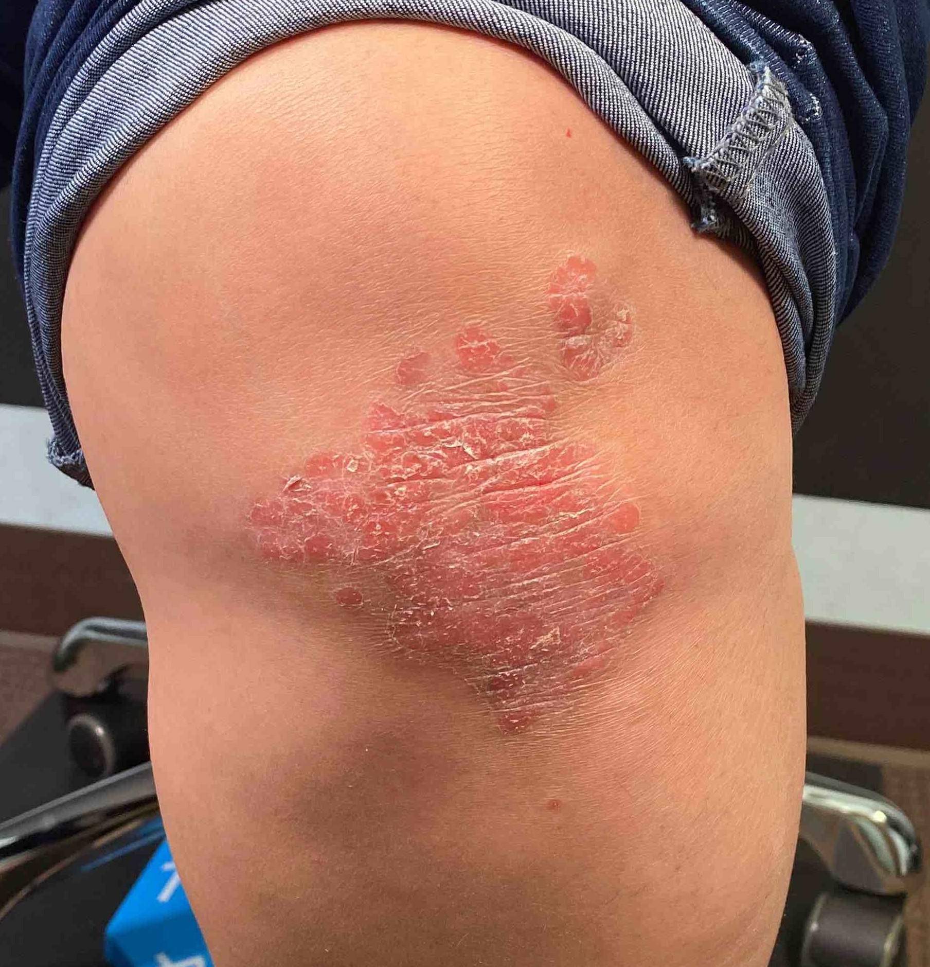 This is a 24 year old male patient who came in for psoriasis on his leg. This patient was very content with his results after being treated by Dr. Turner.