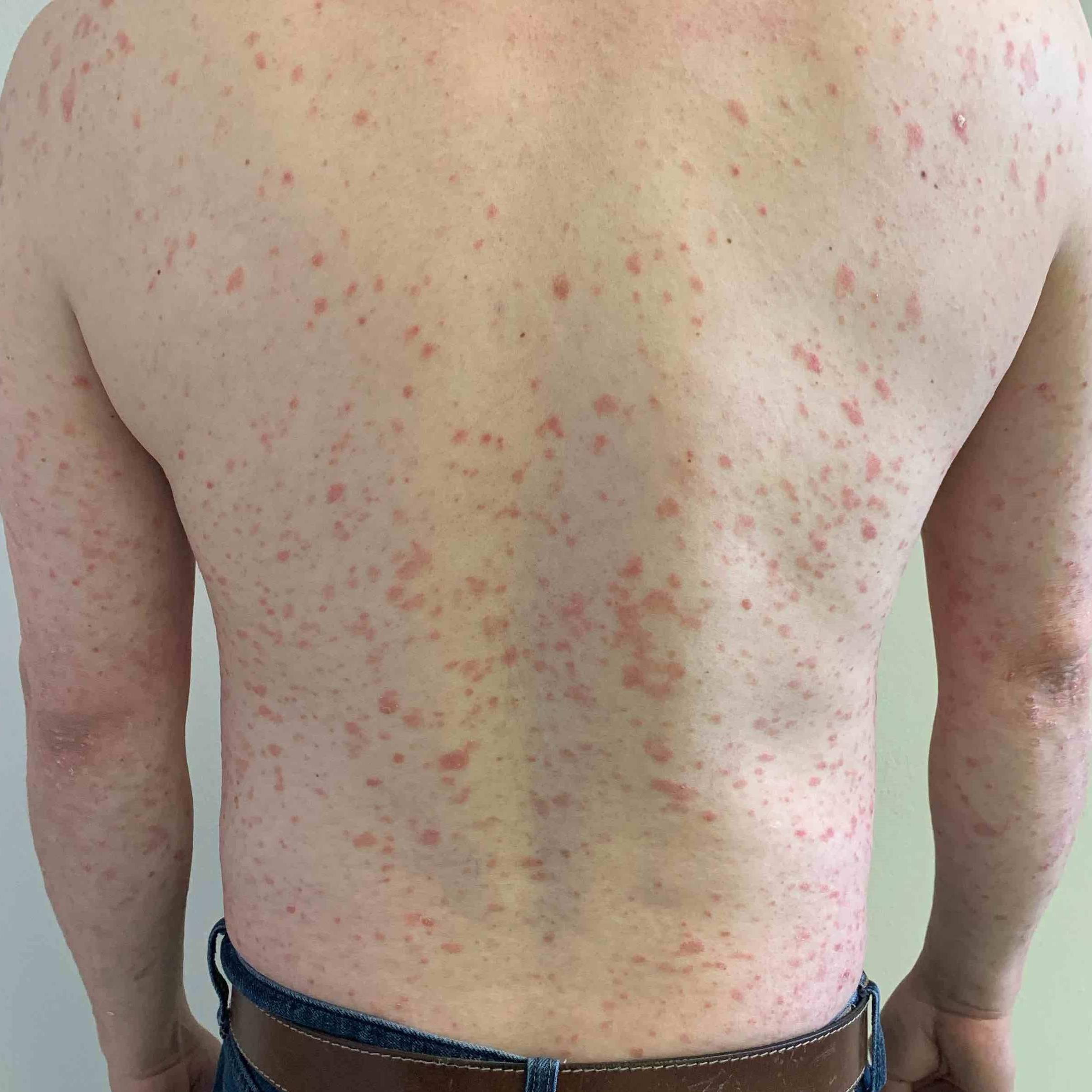 This is a male patient in his mid-40s who came in for psorasis. He was treated with Humira by Dr. Turner and was very content with his results.
