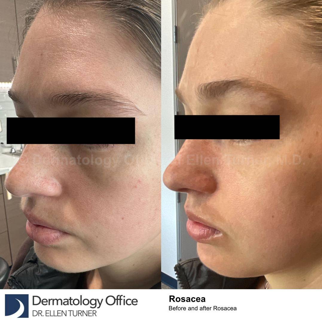 See the before and after results of rosacea treatment for a female patient in her 20s. Expertly performed to reduce redness, inflammation, and improve overall skin clarity.